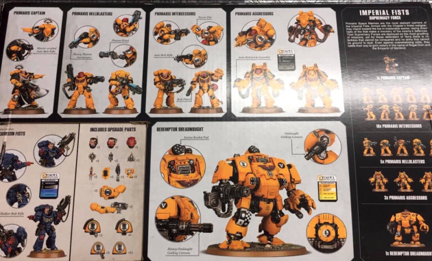 Imperial Fist Battleforce Back of Box....Plus Content Info (Upgrade Sprues)