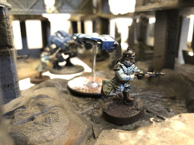 | A mix of miniatures in the terrain- Mantic, Makers Cult, Anvil Digital Forge |