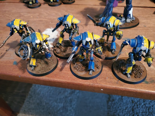 These are the knights of House Trainor, which is on the Howling Griffons Homeworld of Mancora (hence the tiny Howling Griffons)Also, I finally got around to painting my warbringer (Legio Tempestus, modified scheme) but I've yet to add any transfers or patterning to the white panels.I've opted to paint and model my titans in the 41st millennium, which also explains the tiny Howling Griffons.Thanks!Nick