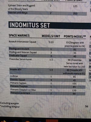 Point costs for the Space Marines and Weapons. Some here from the Idominitus 9th Edition Boxset and finally blast weapons near the bottom.